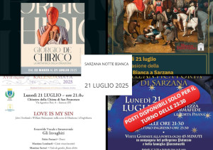 Il 21 luglio Sarzana celebra la sua festa cittadina, in una data storicamente legata alla bolla papale di Paolo II del 1465 e da anni festeggiata con una speciale Notte Bianca. Una