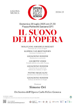 Torna la grande musica con l'Orchestra Carlo Felice di Genova: domenica 20 luglio ore 21.30 in piazza Matteotti concerto “Il Suono dell'Opera
